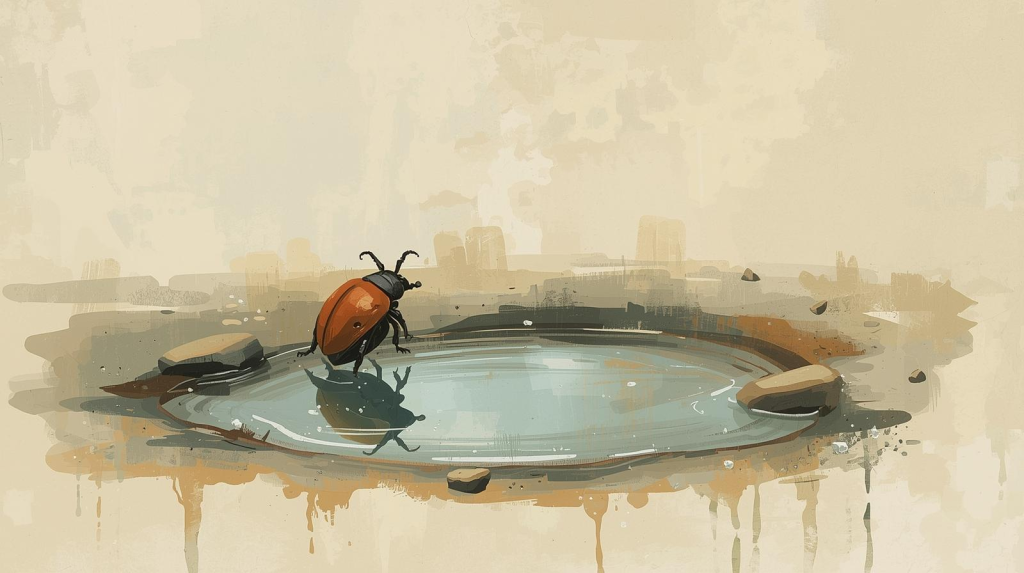 Did you ever seea Tweedle Beetlesit in a puddleand ponder the puddlewhile puddling his feetand beetling his beetlein a muddle of middle-ish thought? Well, Tweedle did. Tweedle Beetle sat in a puddle.Not a big puddle.Not a deep puddle.Just a right-sized, beetle-approved puddle. But the moment he sat,another beetle said,“Hey! Why’s that beetleinside that puddle?” And…