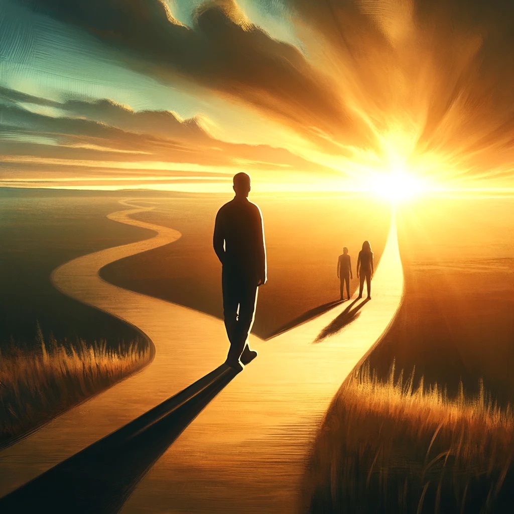 The path stretches forward, winding into the unknown. The Third Man walks alone, his steps steady, his burden left behind. He does not look back—not out of resentment, but because he has already faced his dragon.
