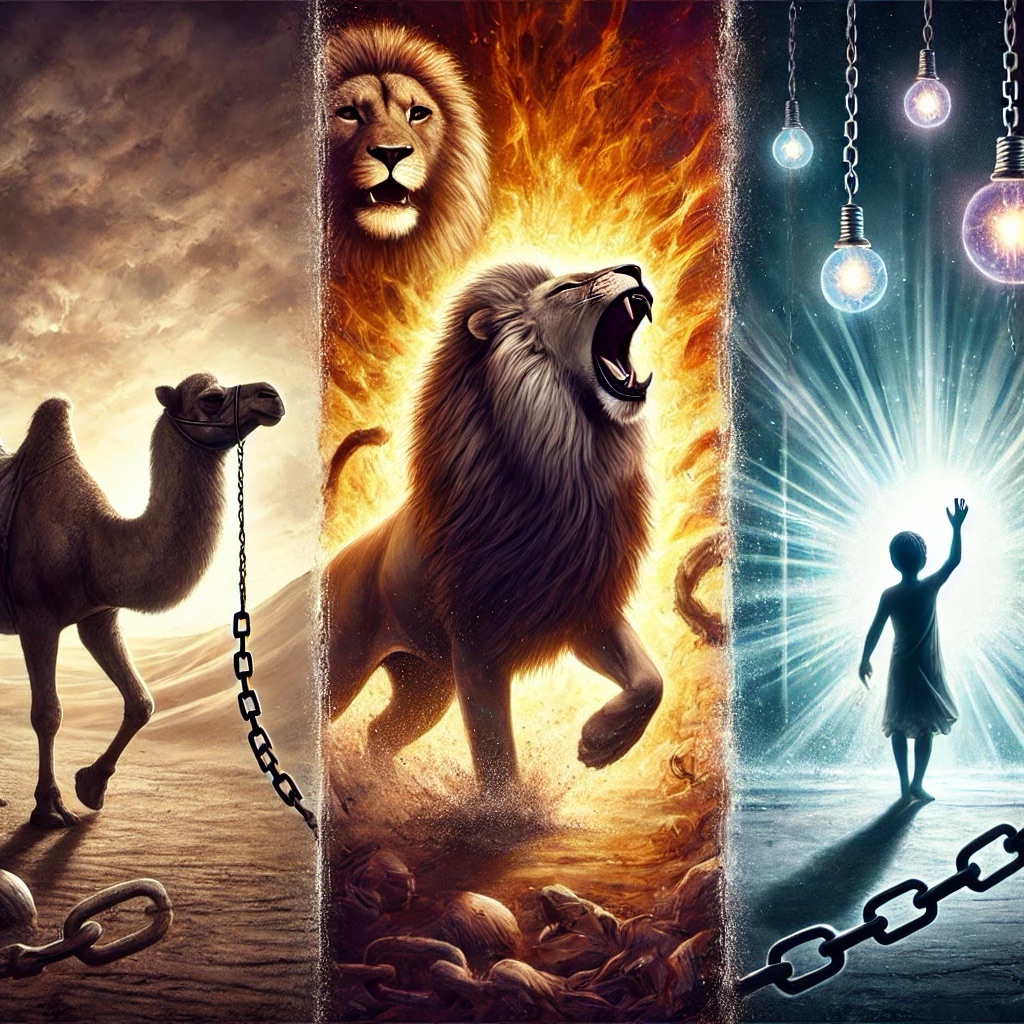 • The Camel (the obedient self), who takes on responsibility and structure.